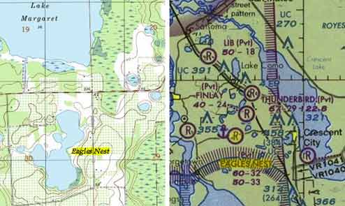 Turning southwest, we climbed to 3000 feet to clear the Mayport Class D airspace and enjoyed the unrestricted visibility as we passed Jacksonville, FL, enroute to Eagles Nest airpark. From the southwest of JAX, Crescent Lake and the St. John's River were clearly visible. We set a cource to Eagles Nest and enjoyed the scenery on the last leg of our trek. ![]() After the "short" 117 mile leg from Jeckyll Island, Eagles Next Airpark came into view. We descended, formed up and made a crosswind pass on the lake, affording Bob his first look at his properties. ![]() |